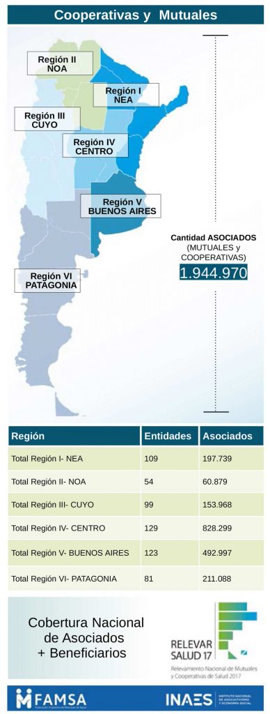 De acuerdo con el trabajo, comprendido entre el 21 de julio de 2017 y el 30 de junio de 2019, sale que en el territorio nacional hay 294 mutuales y 35 cooperativas que brindan servicios de salud, y que 1.944.970 personas están asociadas a estas entidades.