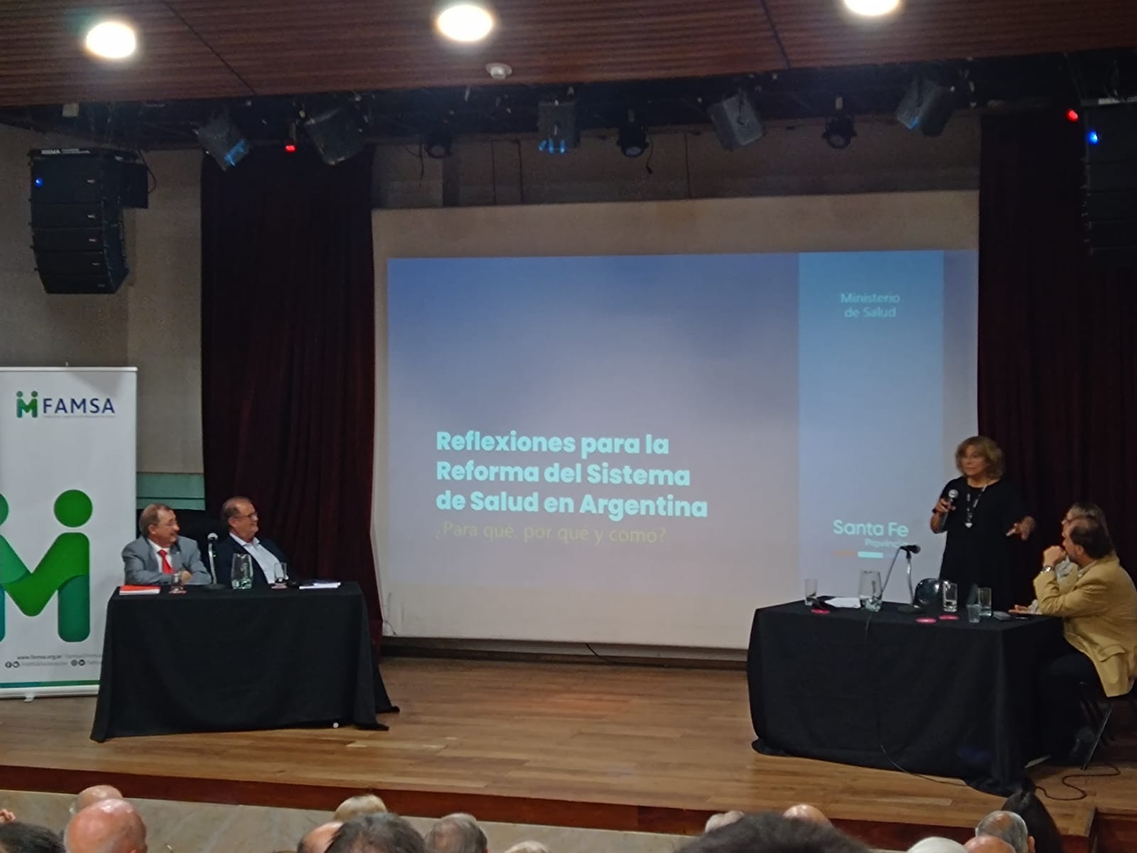 Recordemos que se acaba de realizar en Rosario una jornada debate. Los expositores fueron Sonia Martorano, ministra de Salud de Santa Fe, Rodrigo Sánchez Almeyra, Pte. De la Asociación de Clínicas y Sanatorio Privados de Rosario, Dardo Dorato, secretario general de la Asociación Médica de Rosario (AMR), Silvia Ciancio, diputada provincial y presidenta de la Comisión de Salud de la Cámara baja, y Miguel Cappiello, ex ministro de Salud de Santa Fe. Estuvieron presentes Rubén Torres, presidente de IPEGSA, Mario Glanc, escritor del libro “Cambio de Rumbo”, texto que fue el disparador de este evento, Juan Pivetta, presidente de FAMSA y promotor del libro, el ex gobernador de Santa Fe Antonio Bonfatti y el secretario de Salud de Rosario Leonardo Caruana.