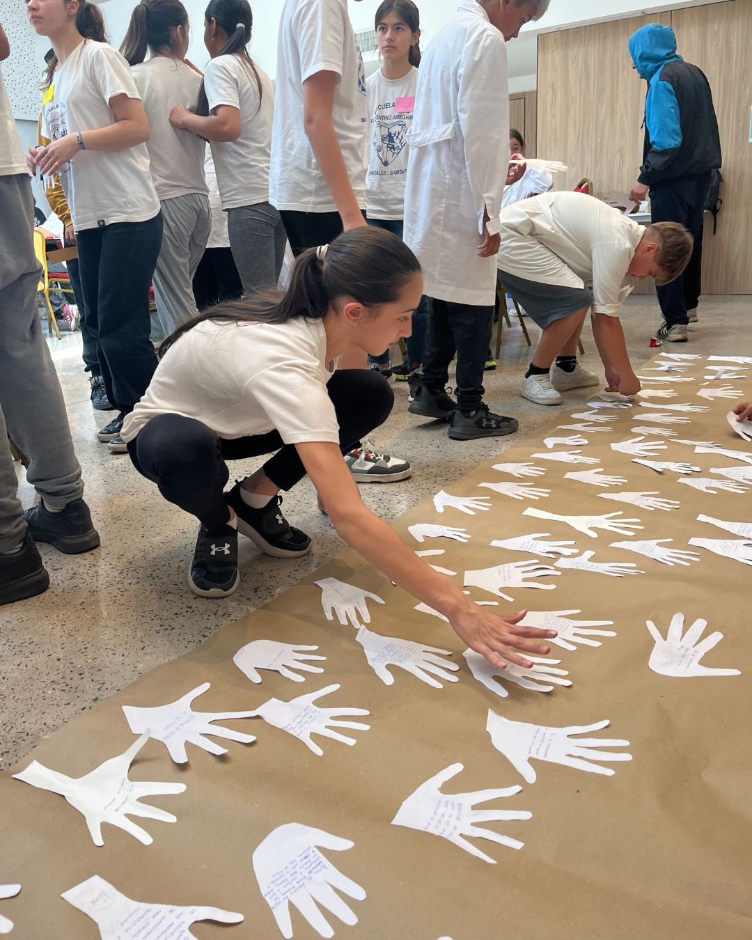 De forma colaborativa, todos los participantes escribieron en sus manos hechas en papel, frases y deseos que propician la Paz y vínculos sanos alejados de los mensajes de violencia; que han sido dispuestos en un gran mural que será expuesto en la escuela fiscal.
