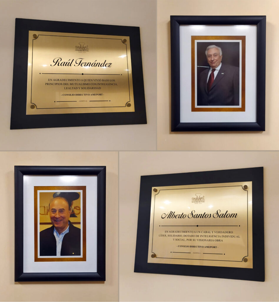 Posteriormente, bajo una lluvia de aplausos, Ricardo Lorenzo y Leonardo Salom destaparon dos placas de homenaje que lucirán en la sede social de AMEPORT y recordarán por siempre a quienes serán los grandes hacedores de la mutual.