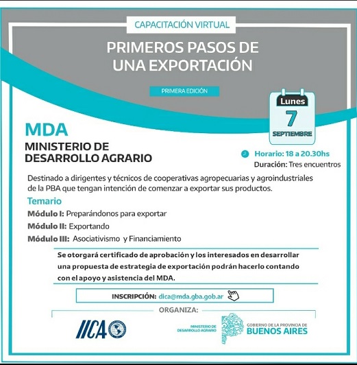 El Ministerio de Desarrollo Agrario llevará adelante una capacitación para los dirigentes cooperativistas que serán los futuros exportadores