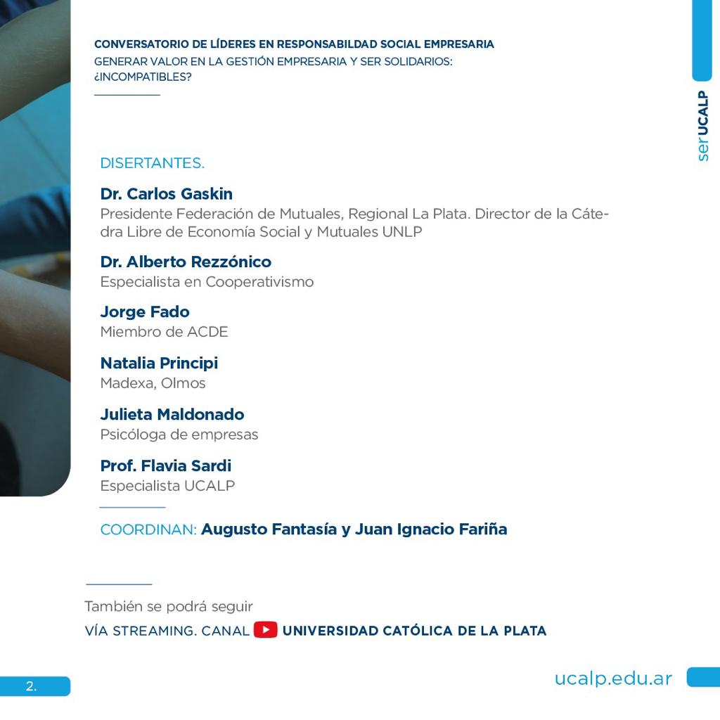 El Prosecretario de CONAM y Presidente de la Federación de Mutuales Regional La Plata, Carlos Gaskin, expondrá en el Conversatorio de Líderes en Responsabilidad Social Empresaria organizado por la Universidad Católica Argentina (UCA), el próximo 5 de mayo, de forma presencial y virtual.