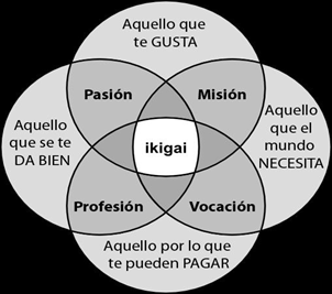[2] La palabra Ikigai es un término japonés que significa iki (vida) y gai (mérito). Es una filosofía japonesa ejercida particularmente en la isla de Okinawa y tomada como ejemplo de felicidad y longevidad humana (Daniel López Rosetti, 2021)