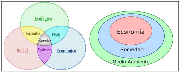Diagramas de sostenibilidad débil (izquierda) y fuerte (derecha)