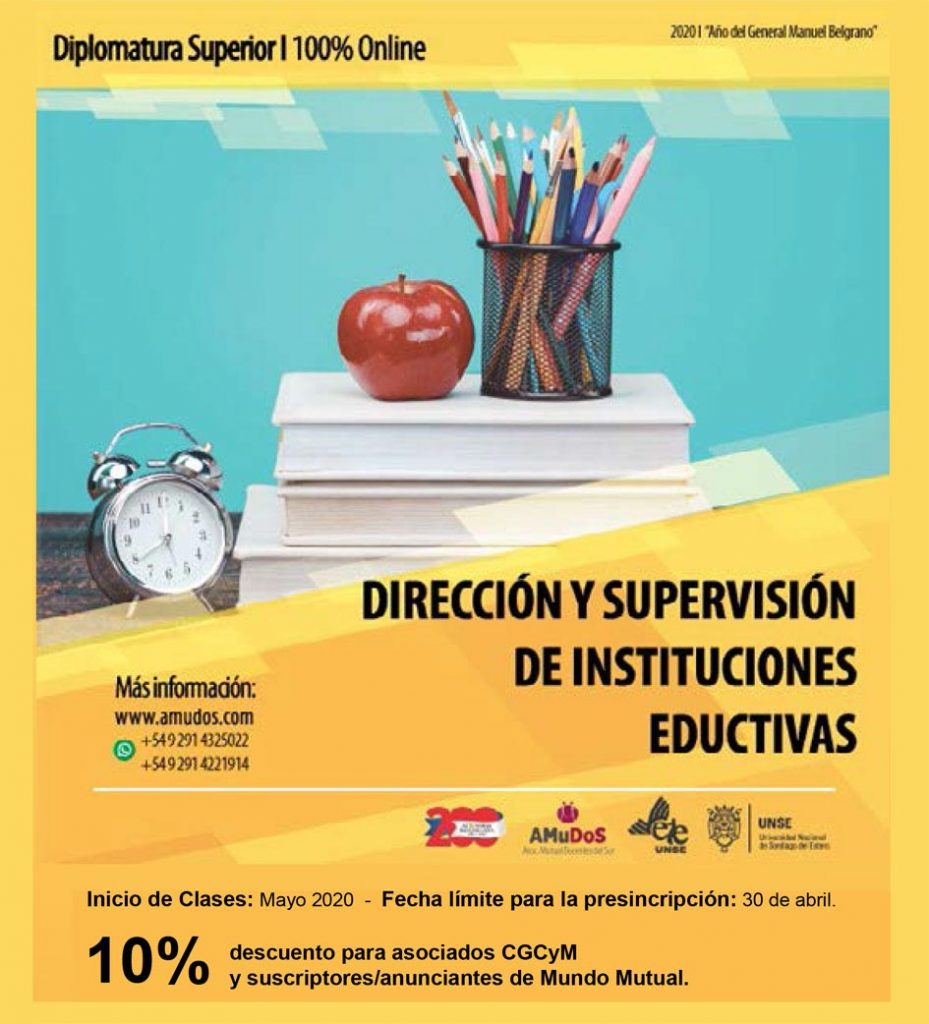 La Asociación Mutual Docentes del Sur, primera y única mutual docente de la provincia de Buenos Aires, lanza, junto a la Universidad Nacional de Santiago del Estero, la presente Diplomatura Superior en Dirección y Supervisión de Instituciones Educativas, 100% a distancia.