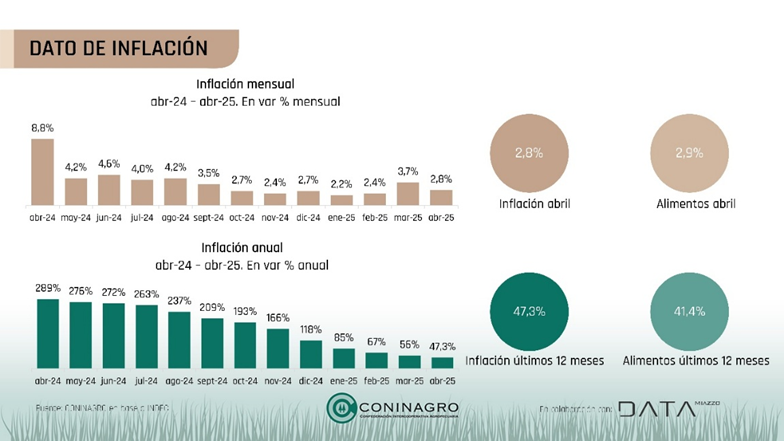 El INDEC informó que la inflación de abril de 2025 fue del 2,8%, por debajo del 3,8% registrado en marzo