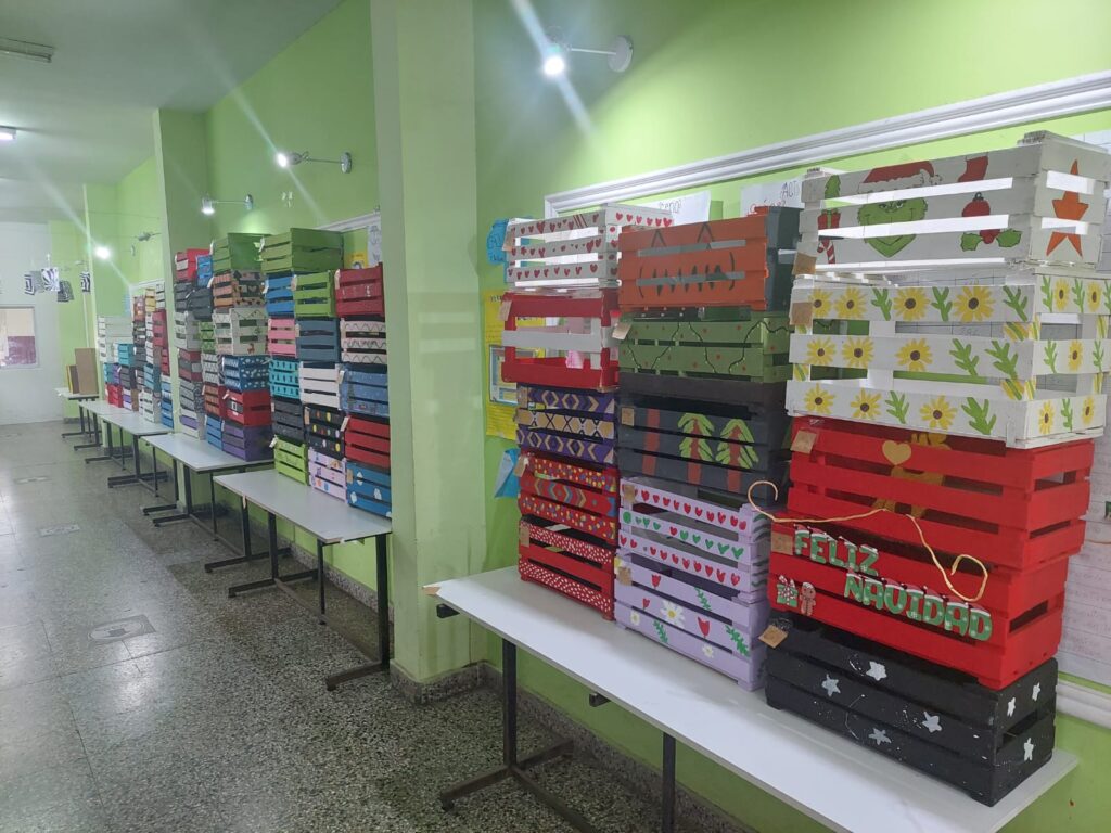 –Hay muchas anécdotas. No soy exactamente el que entrega las donaciones, porque lo hacemos a través de otras instituciones, pero a veces he estado o me han compartido las personas. Hay una anécdota que me parece bastante fuerte. Desde un principio, se hicieron los cajones de madera. Llegaban a familias muy carenciadas. Veía las fotos y eran casillas que no tenían ni paredes; solo un techo. Y no iban a tener nada ese día para comer. Además de hacer referencia a que esa ayuda era como si hubiera llegado Papá Noél ese día, me transmitía el docente que entregaba las canastas que los chicos jugaban con el cajón; una vez que sacaban las cosas, los nenes chiquitos se sentaban en el cajón y otro lo empujaba como si fuera un carrito. Eso motivó a que, algunos años hemos hecho carritos de madera con ruedas para que se transforme en un juguete.