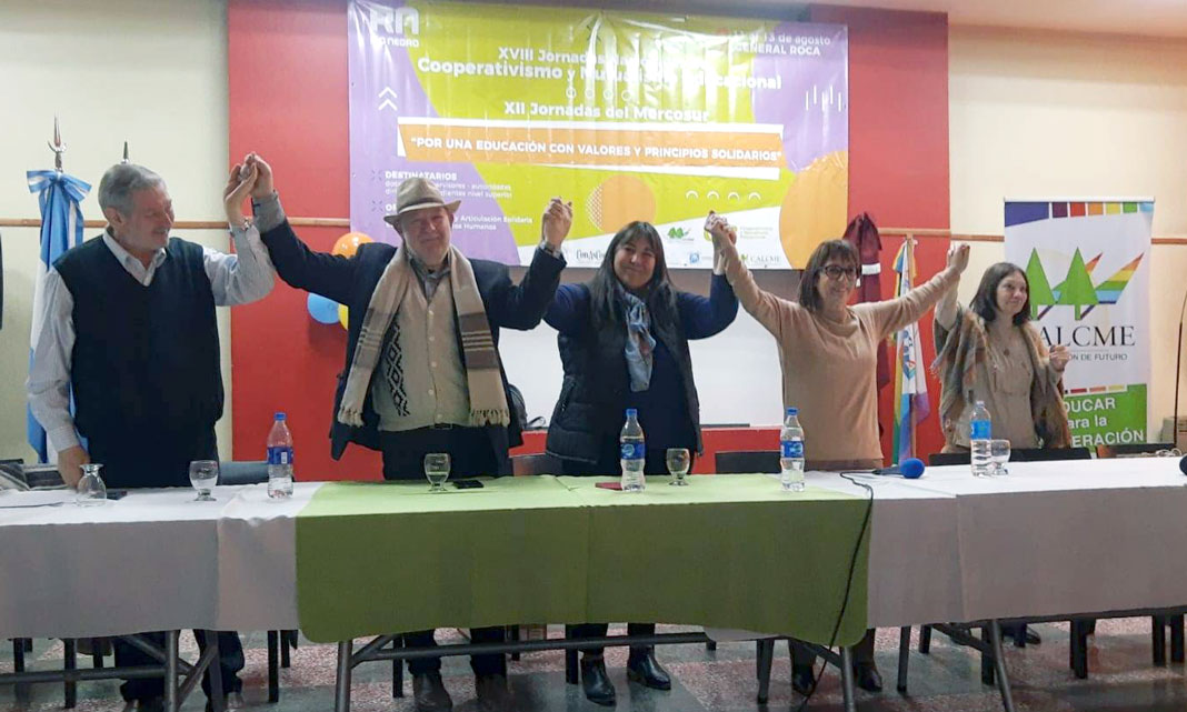 Desde el día 11 hasta el 13 de agosto pasado en la ciudad de Roca, provincia de Río Negro, se llevaron a cabo las XVIII Jornadas Nacionales de Cooperativismo y Mutualismo Educacional y XII de MERCOSUR. Organizadas por el Ministerio de Desarrollo Humano y Articulación Solidaria y la subsecretaria de Cooperativas y Mutuales de Río Negro, con el auspicio de CAM (Confederación Argentina de Mutualidades), CALCME (Célula Argentina y Latinoamericana de Cooperativas y Mutuales escolares), la Federación de Cooperativas de Rio Negro, FÉMUR, los consejos asesores de cooperativas y mutuales de esa provincia.