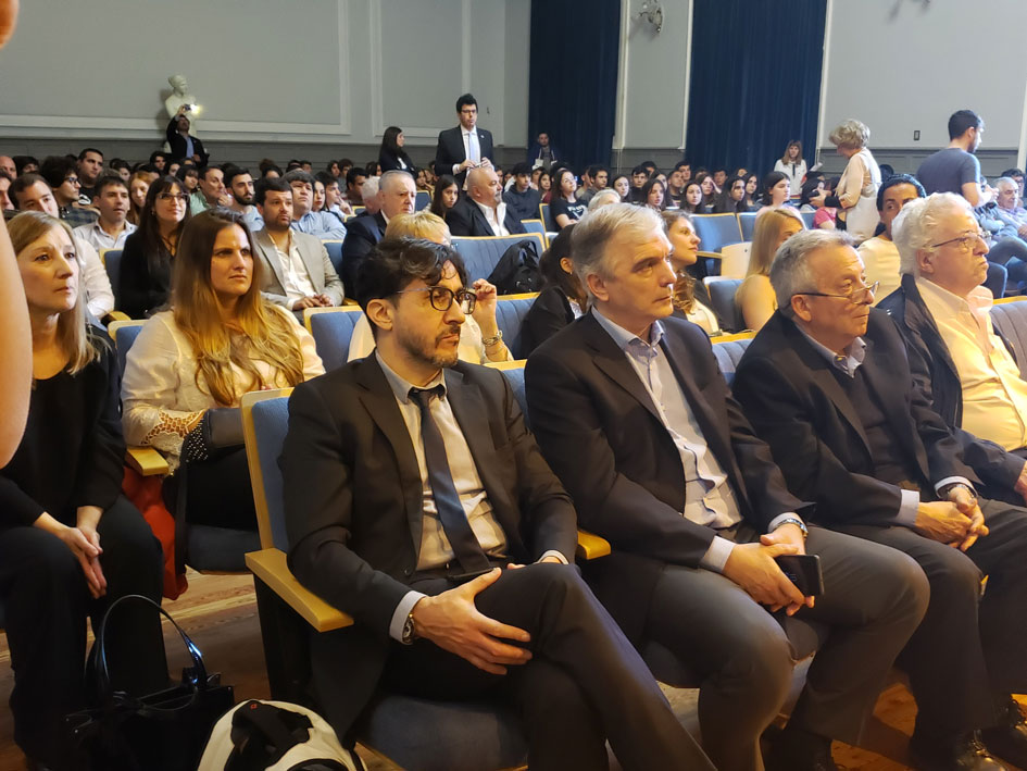 Ana María García Munitis, directora del Colegio, realizó la presentación en el salón de actos del centenario Colegio Nacional de La Plata, dependiente de la Universidad nacional. Dio rápido paso a las palabras de la máxima representación del CGCyM, Jorge Núñez, quien destacó: “Es una gran emoción estar aquí, me ha sido dada la posibilidad de evaluar los trabajos y debo decir que he aprendido mucho de estos jóvenes que se van incorporando en esta dinámica de la ESS. Tenemos que darles a estos chicos la oportunidad de ofrecer todo el conocimiento para que ellos sigan aprendiendo”.