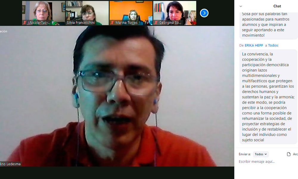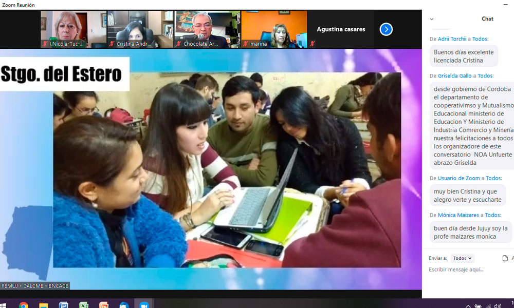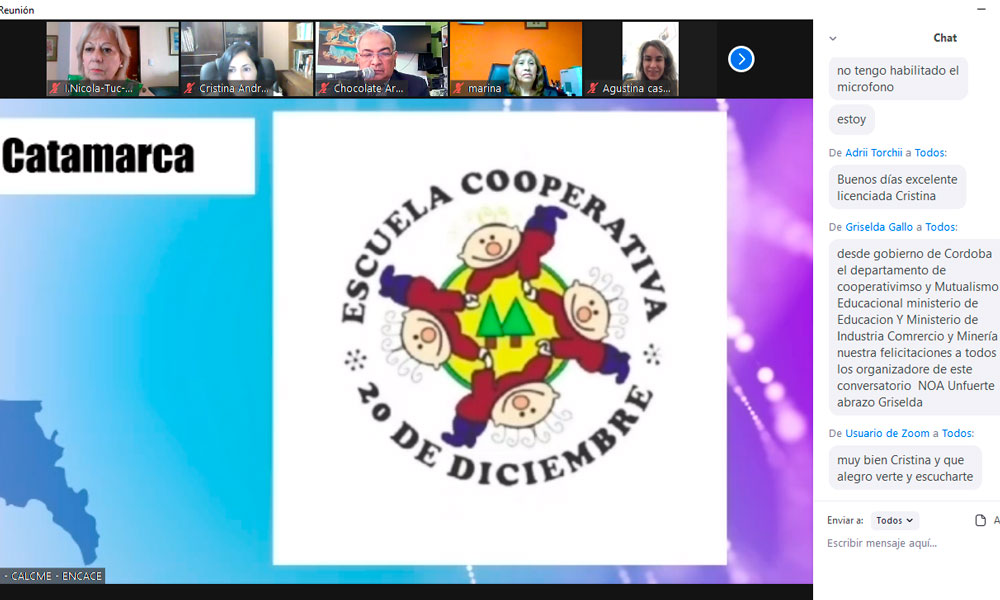 El encuentro fue virtual y tuvo por lema “Sembrando semillas de cooperación en este terruño” y los objetivos fueron: promover el diseño de estrategias para garantizar aprendizajes colectivos centrados en los valores y principios del cooperativismo y del mutualismo, analizar acciones conjuntas e iniciativas de lxs estudiantxs, docentes guías y organizaciones para que en cada territorio se pueda lograr un acompañamiento integral a las trayectorias escolares de niñas, niños, adolescentes y jóvenes, asegurando la integración regional.