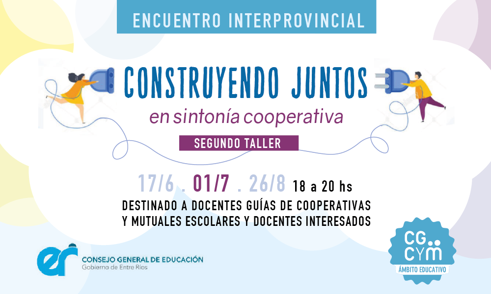 El jueves 1 de julio, el Consejo General de Educación de la provincia de Entre Ríos (CGE) y el Colegio de Graduados en Cooperativismo y Mutualismo (CGCyM), a través de su área Ámbito Educativo y el apoyo de la Delegación CGCyM Entre Ríos, realizaron el segundo taller del Encuentro Interprovincial “Construyendo juntos en sintonía cooperativa” destinada a docentes guías de cooperativas y mutuales escolares e interesados en la temática.