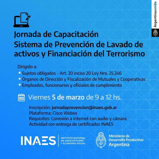 Inscripción y más información: jornadaprevencion@inaes.gob.ar