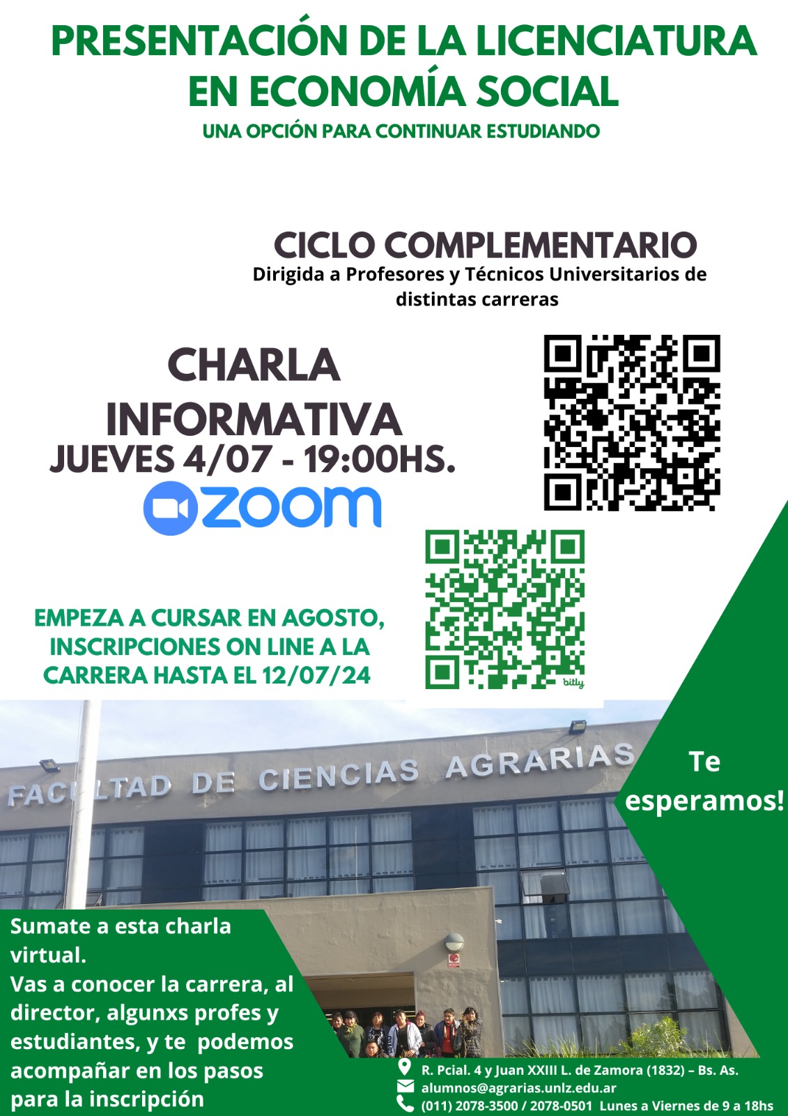 Cursando sólo 11 materias presenciales se accede al titulo de Licenciados en Economía Social